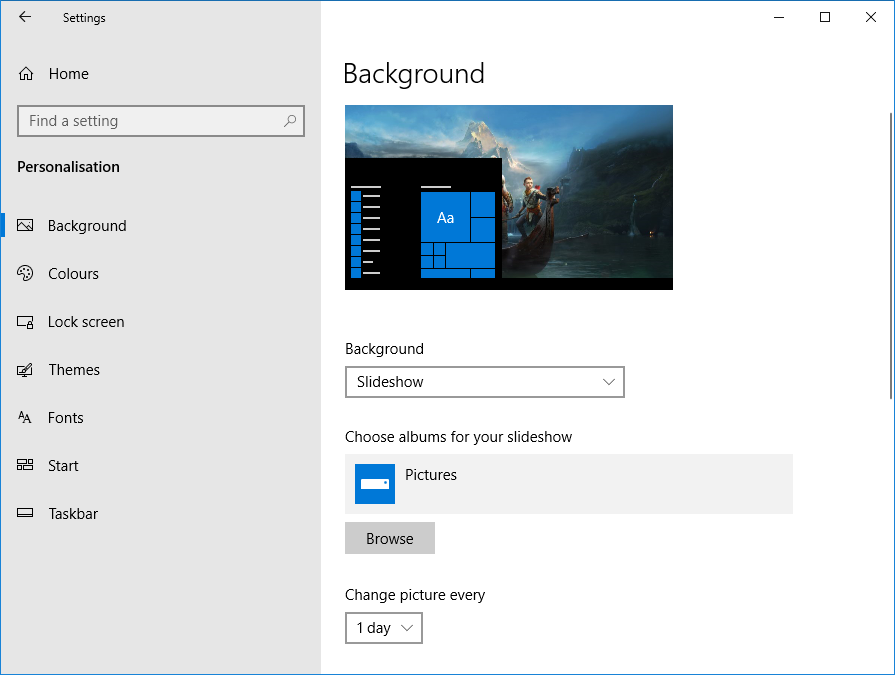 - Adjust the other options, like the Change picture every dropdown, as you wish.